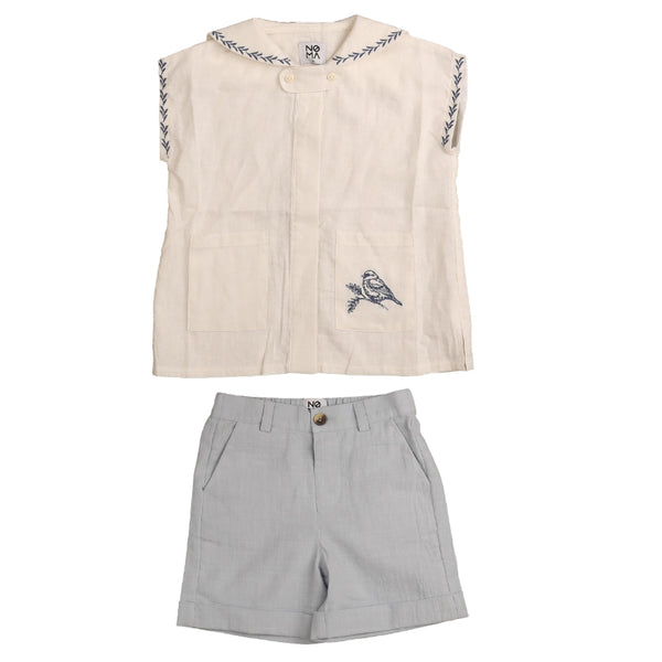 Noma Bird Embroidered Pocket Set in Light Blue
