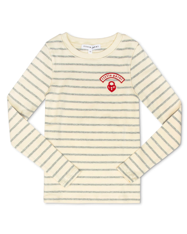 Little Parni LS Grey/Ivory Stripe Tee