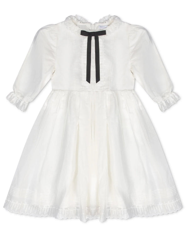 Little Parni Long Sleeve White Evening Bow Dress